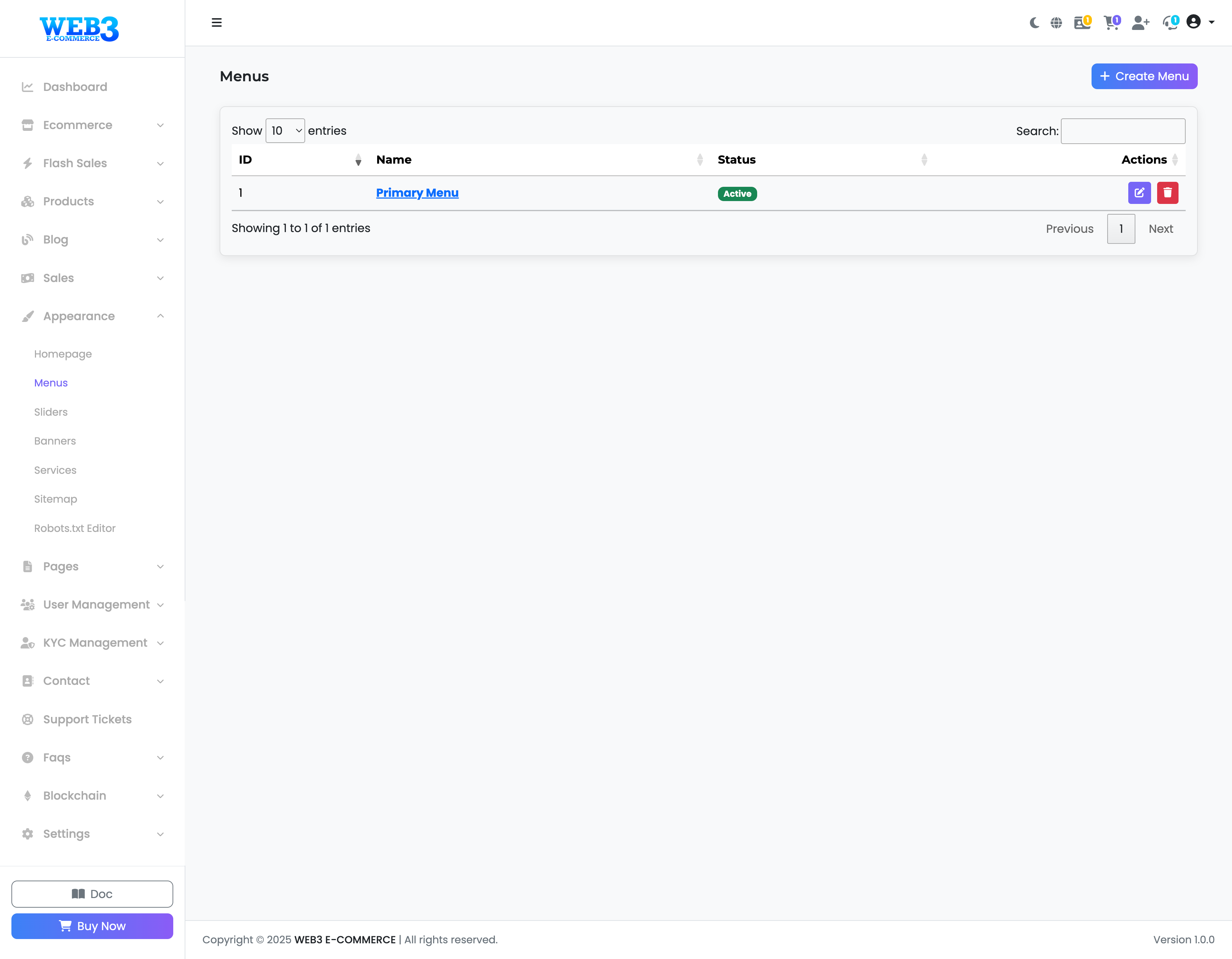 - Actions: Click the "Edit" icon to modify a specific menu item, or the "Delete" icon to remove it from the menu.