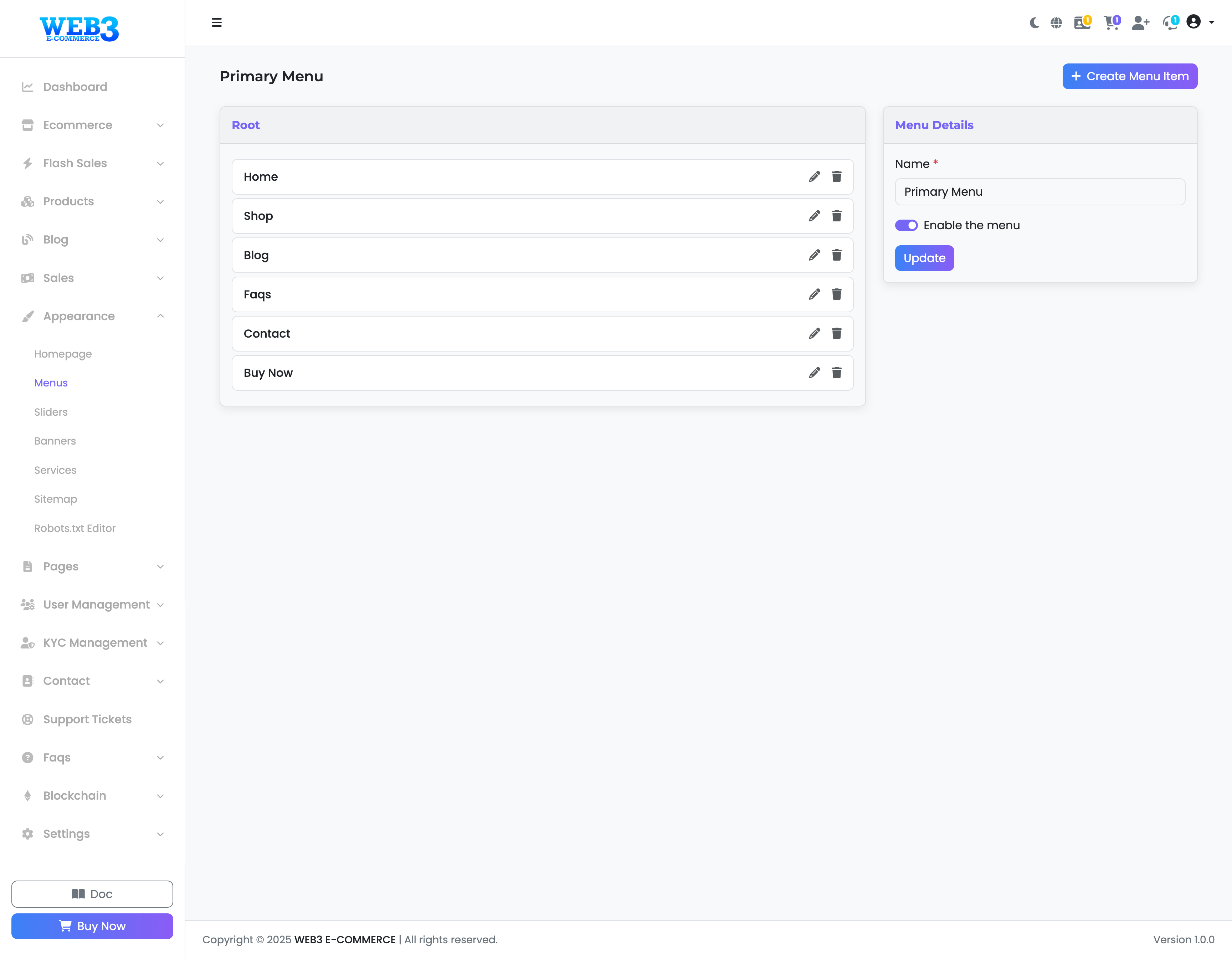 - Delete (Trash Icon): Permanently removes a menu and all its items.