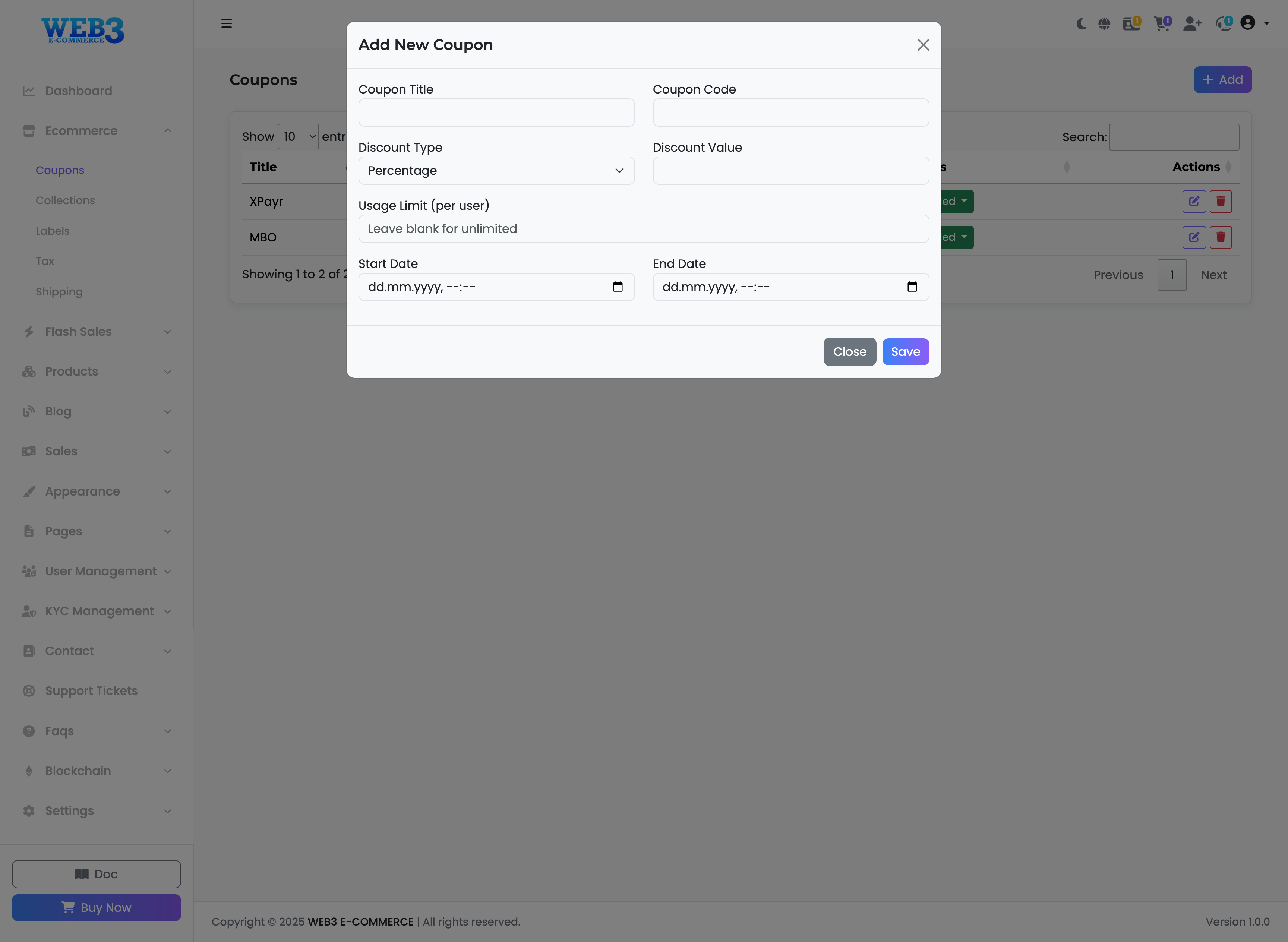 - Start Date & End Date: Set the period during which the coupon is valid. The coupon will not work outside of these dates.