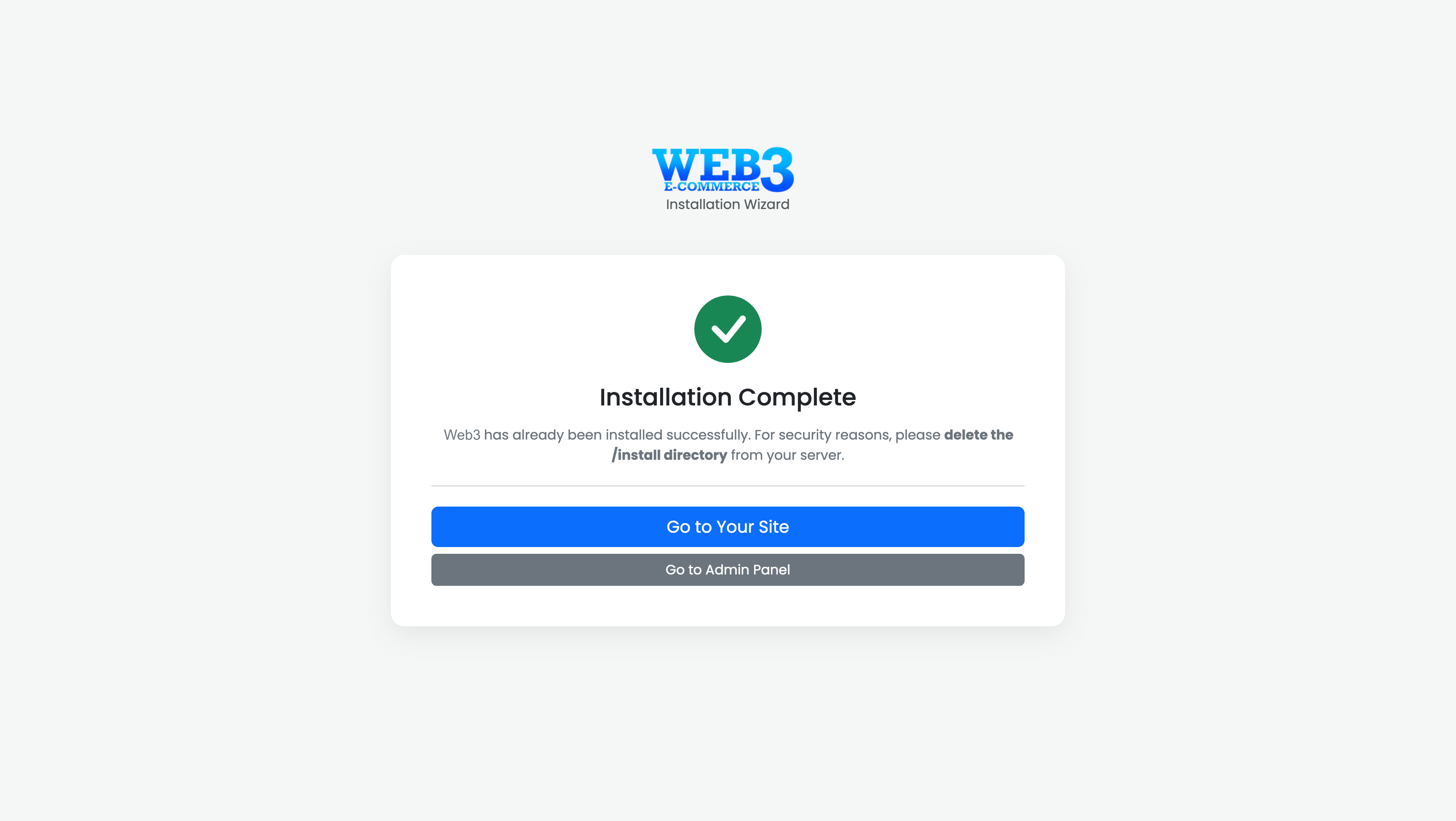 Congratulations! Your web3 e-commerce platform has been successfully installed and configured. You are now ready to start using your site.