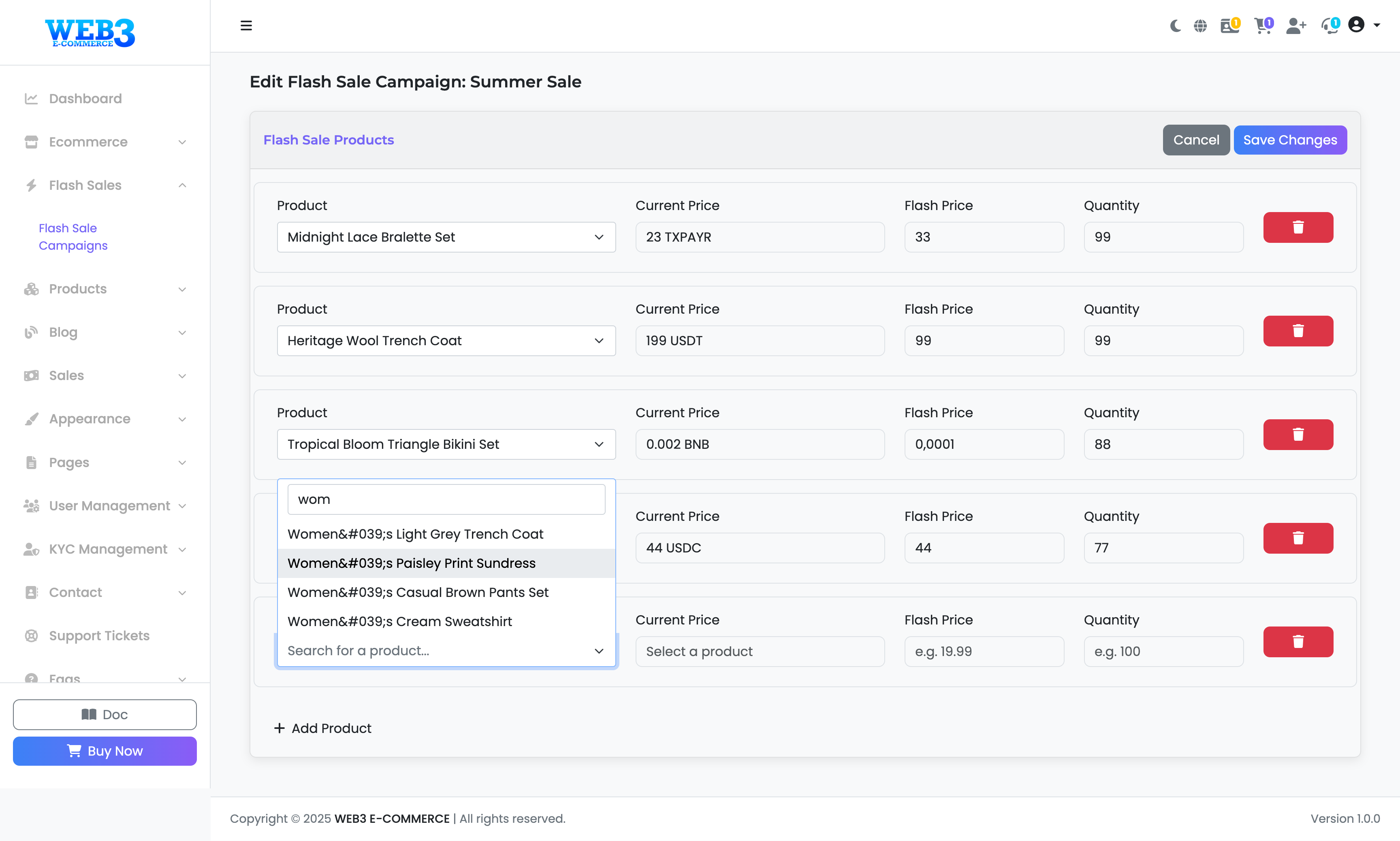 Flash sales are a powerful marketing tool to create urgency and boost sales for a limited time. This section allows you to create, manage, and add products to your flash sale campaigns.