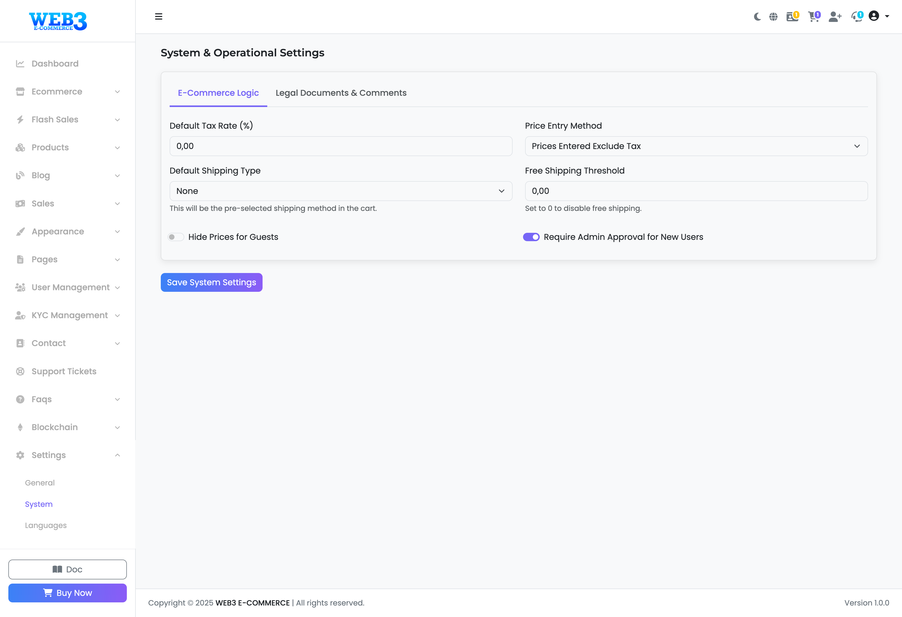 Settings: System - E-Commerce Logic