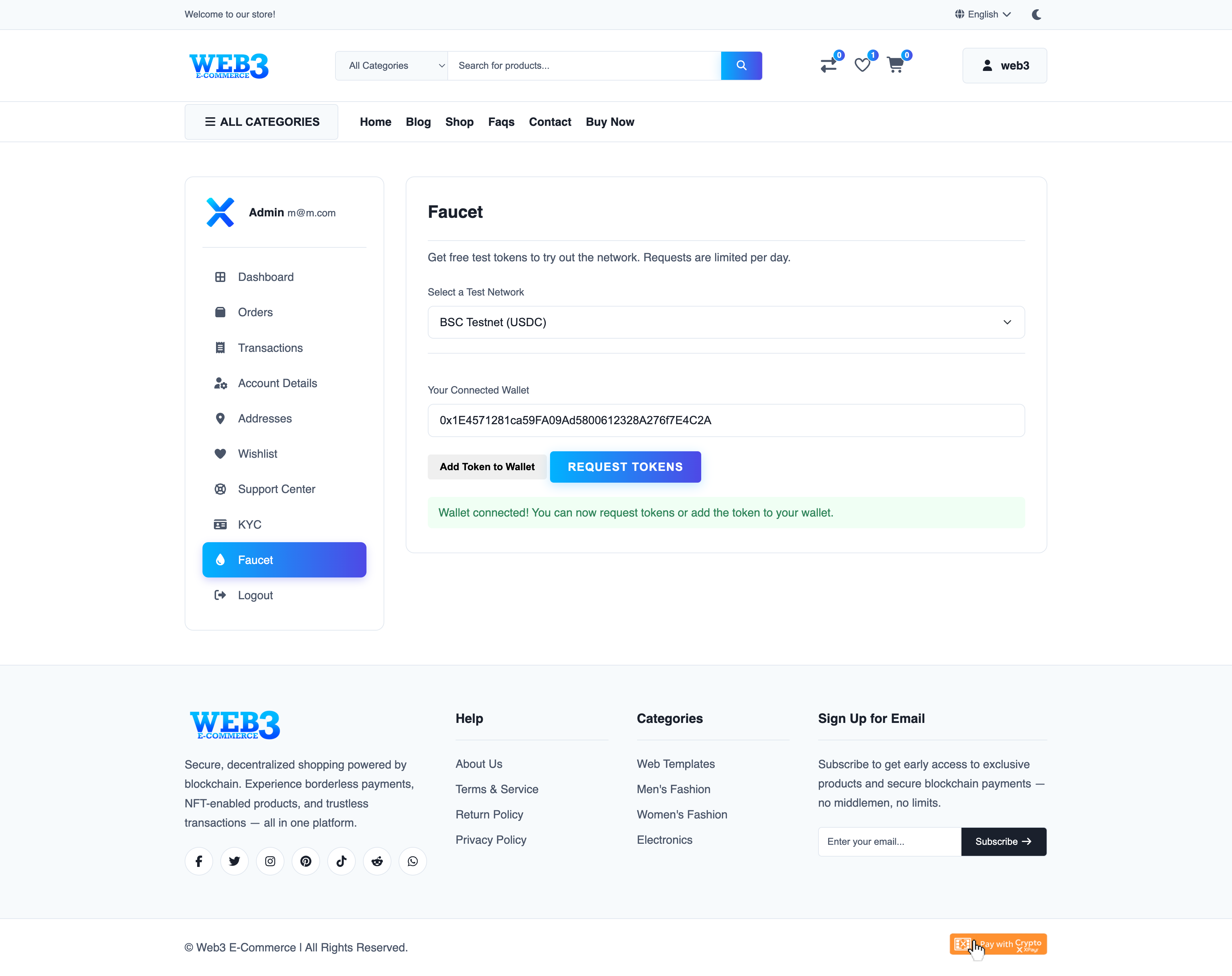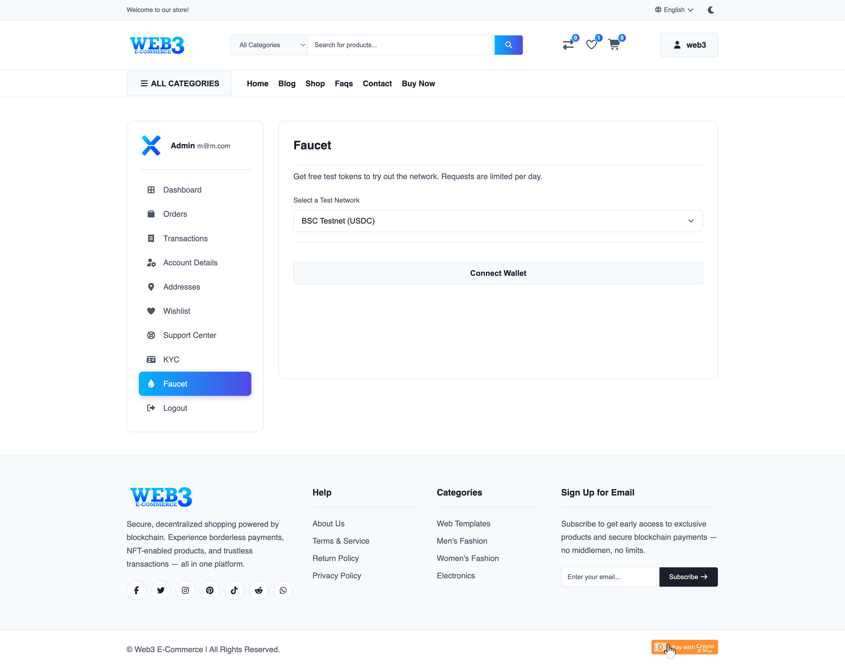 The Faucet is a tool that allows you to claim free test tokens to experiment with the platform on various test networks. These tokens have no real-world value and are used only for testing purposes.